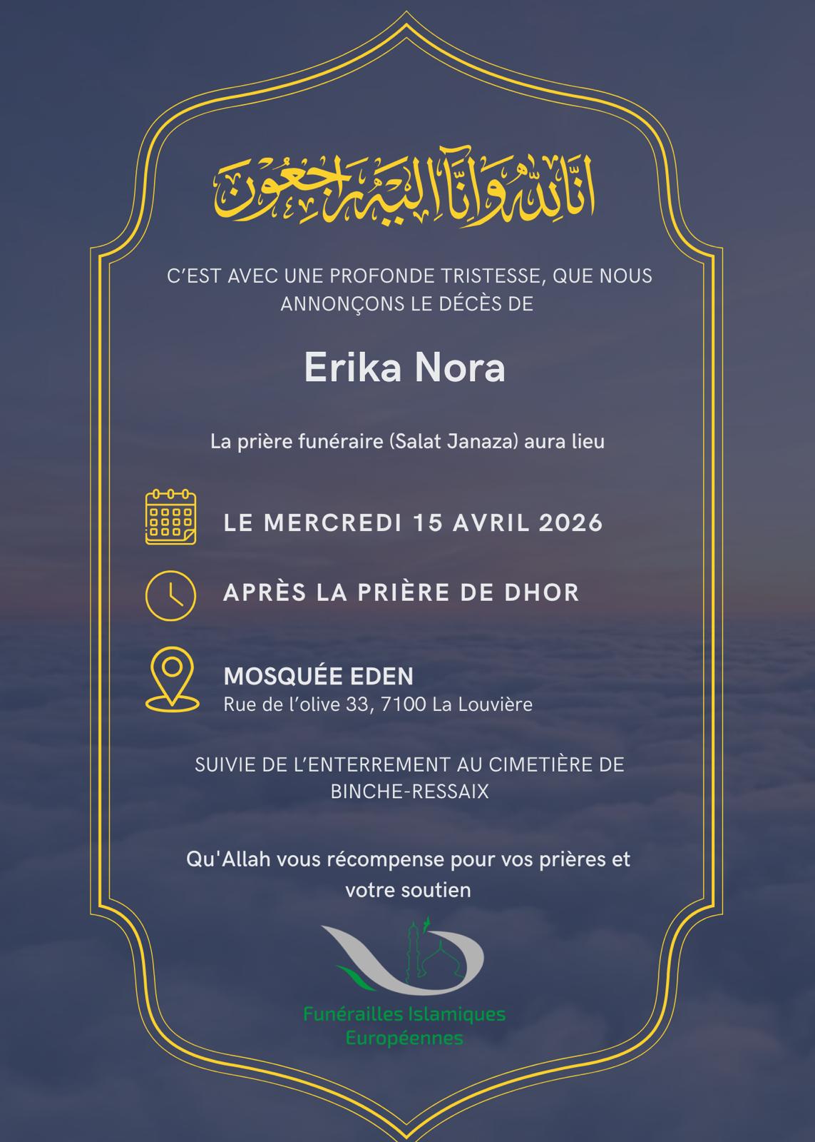 Partagez avec nous les prières mortuaires ( salat al-janaza) qui se déroulent à Bruxelles et ses environs afin que toute la communauté puisse en être informée.